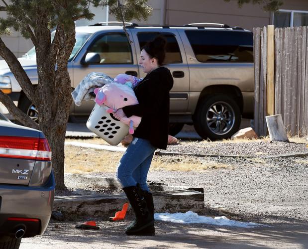 A sister and brother were shot and killed on Wednesday evening in a murder-suicide incident in the Stratmoor area. Amber Lanza, aunt of Pheonix Vigil, 19, and her brother Sylvio Anglada, 17, carries some of her niece’s stuffed animals while gathering the 19-year-old’s belongings from her apartment on Thursday, Feb. 4, 2021. Vigil and her brother were shot and killed by Vigil’s ex-boyfriend before he turned the gun on himself inside a Stratmoor apartment Wednesday evening. Vigil had started young at Kings Soopers and had worked her way up to cashier. She was going to soon be graduating from Pima Medical Institute. (Photo by Jerilee Bennett, The Gazette)