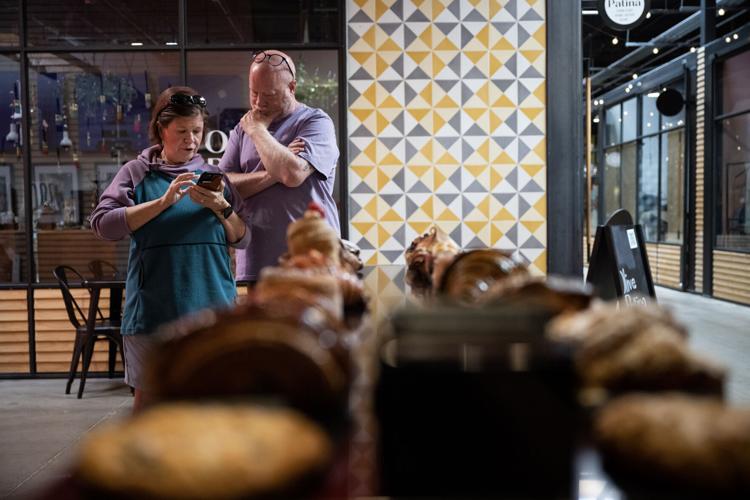 Jordyn Windham lines up peanut butter mini-cubes after filling and decorating them before the bakery opens on Friday, Sept. 1, 2023, at Black Box Bakery in Edgewater, Colo. (Timothy Hurst/Denver Gazette)
