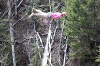 One hundred feet above and 100 feet out over a ravine off Squaw Creek Road southwest of Edwards on most days you can find professional slackliner Davis Hermes highlining freestyle tricks.