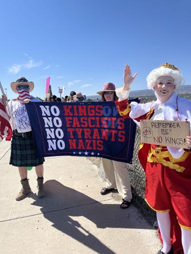 GRAND JUNCTION • At Grand Junction’s largest park on Saturday, cars streamed in, drivers honked and hailed people who walked toward the interstate overpass for a Western Slope edition of a “No Kings” rally.