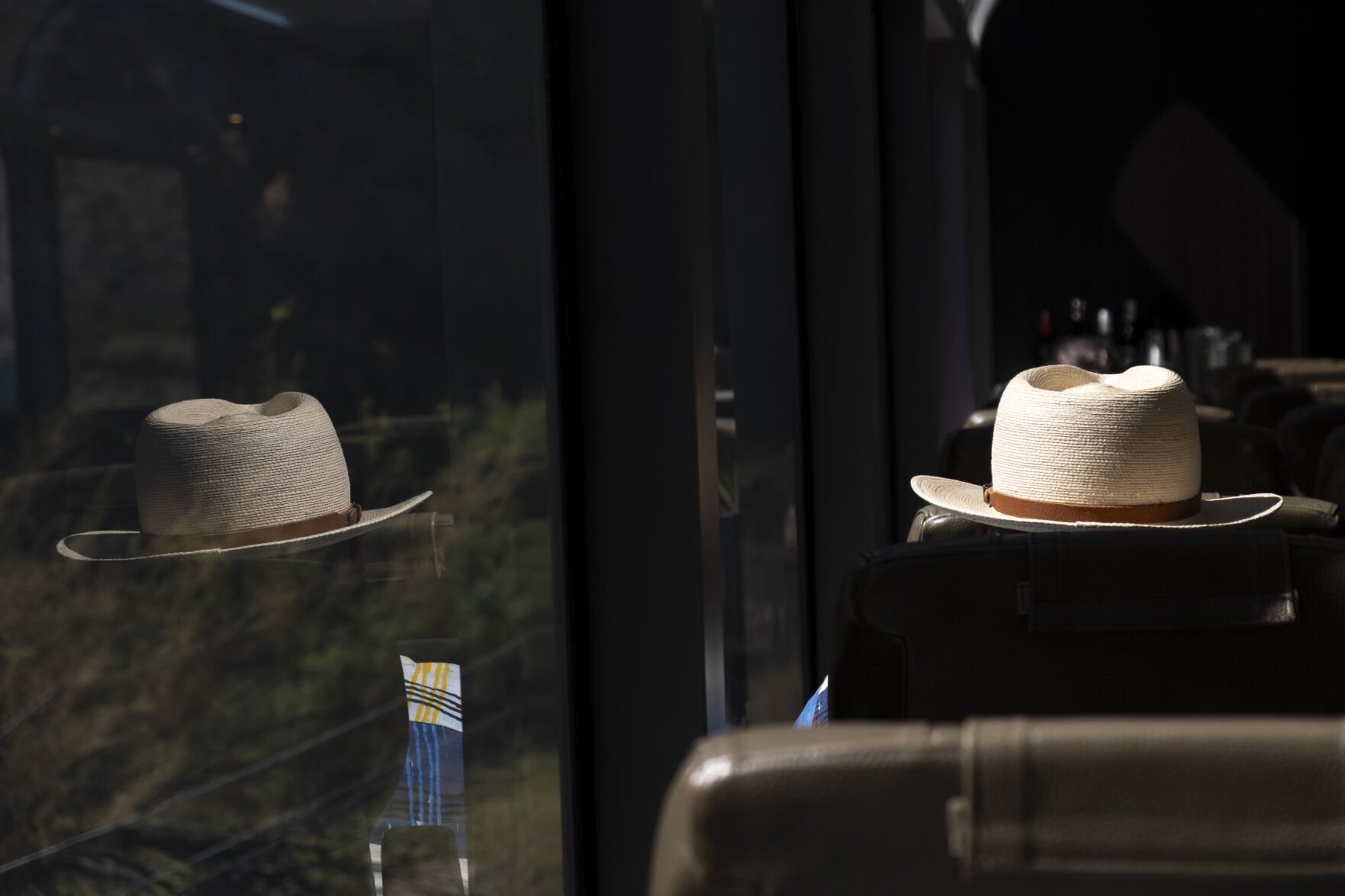 Spencer Windes sits in his seat during a media preview train ride aboard the Canyon Spirit luxury train ride Sunday, July 27, 2025 from Salt Lake City, Utah to Denver, Colorado.