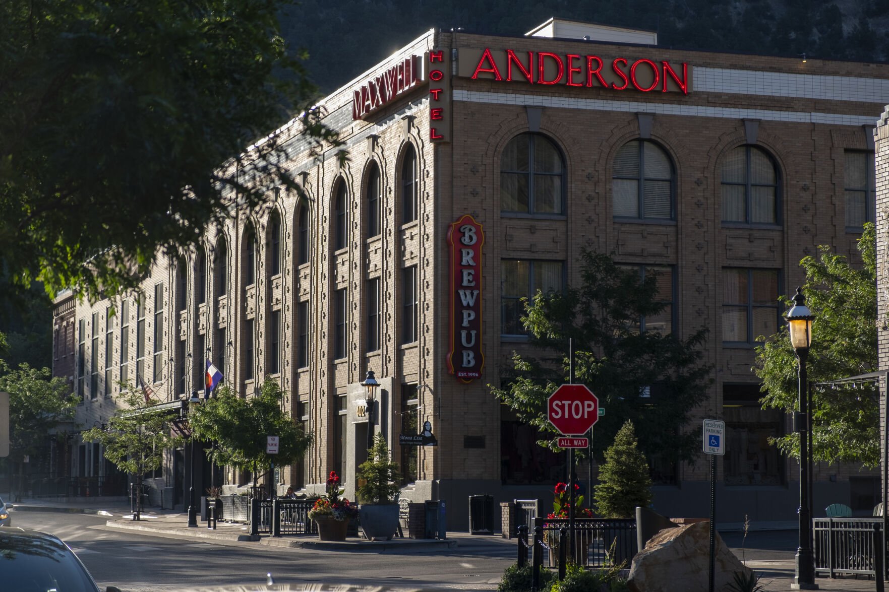 The Maxwell Anderson (formerly Hotel Denver) can be seen from 7th Street in Glenwood Springs, Colorado. The hotel houses the Glenwood Canyon Brewing Company and was one of the hotels the Canyon Spirit group stayed at during a preview ride from Salt Lake City, Utah to Denver, Colorado.