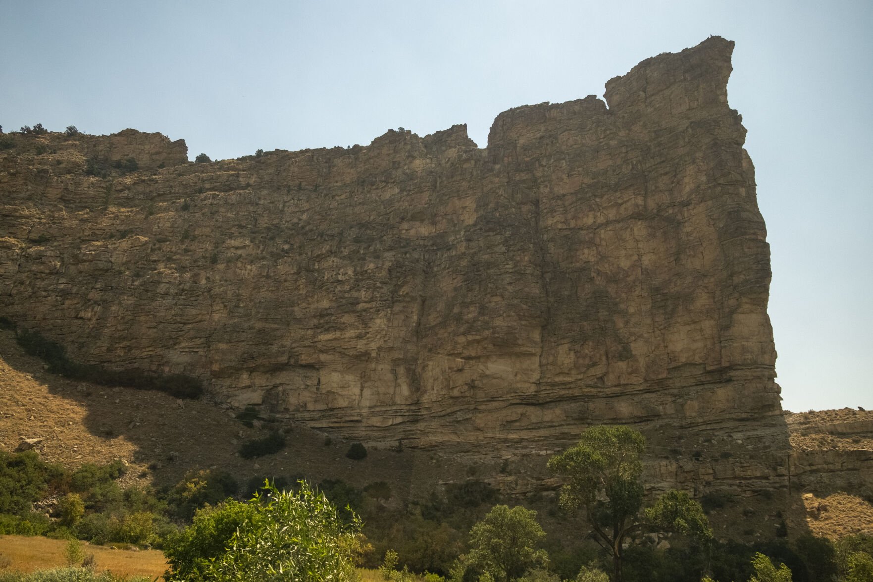 Castlegate spire in Price River Canyon outside Price, Utah is a formation feature of two sheer sandstone walls on either side of the Price River, which appear to open like a giant gate as travelers approach the narrow section of the canyon.