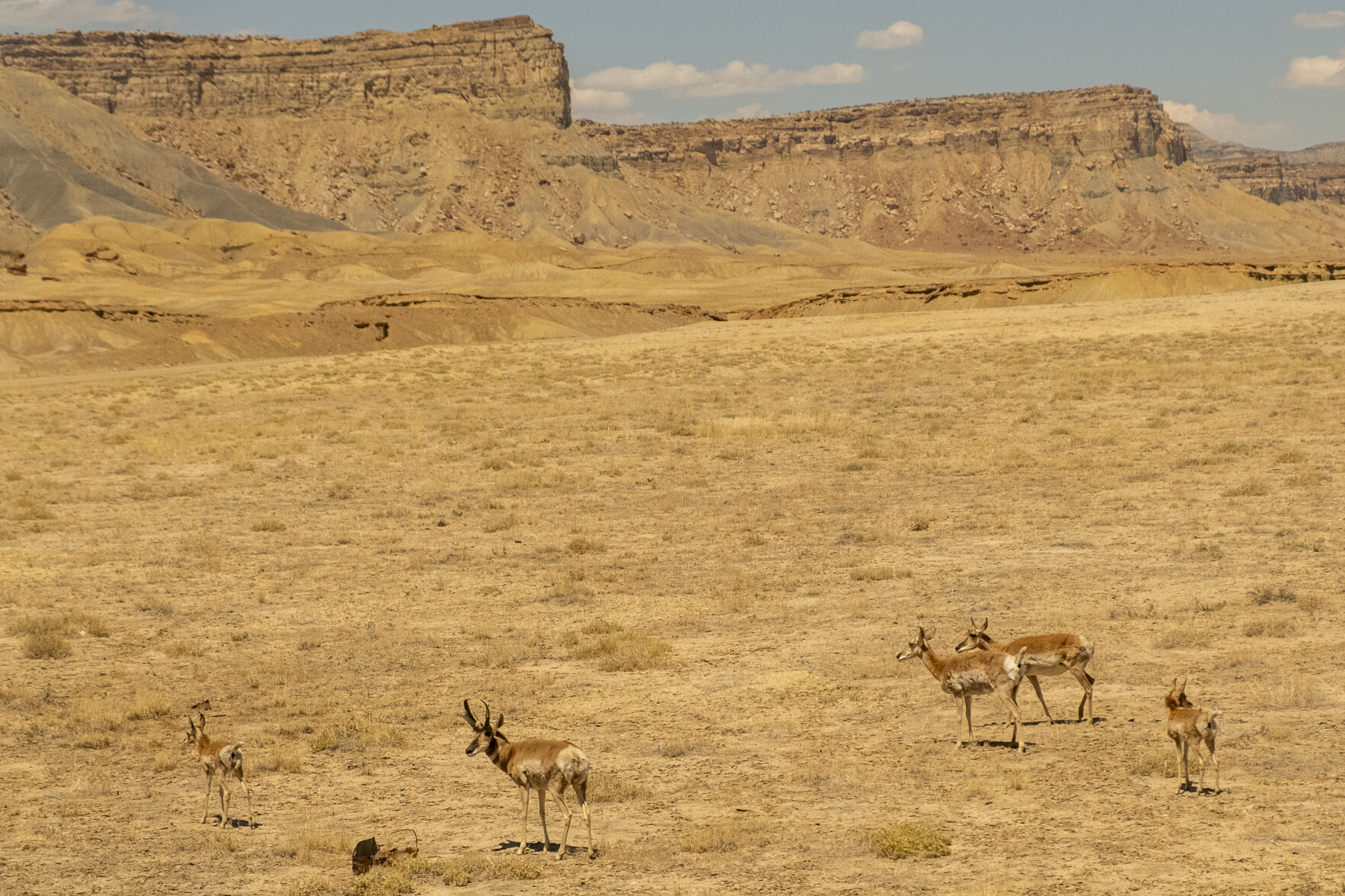 Pronghorn stand along the railroad tracks outside Thompson Springs, Utah during a media preview train ride on the Canyon Spirit Saturday, July 26, 2025 between Salt Lake City, Utah and Denver, Utah. Pronghorn are common along the railroad line in eastern Utah.