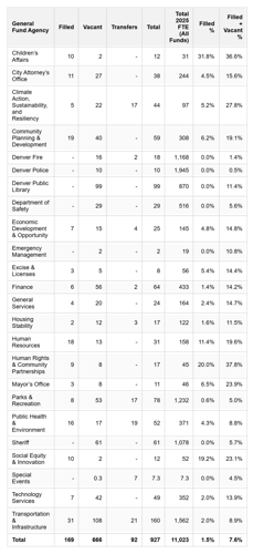 The Denver Sheriff’s Office lost 61 positions that were vacant, while the Denver police lost 10. Denver fire lost 16 openings.