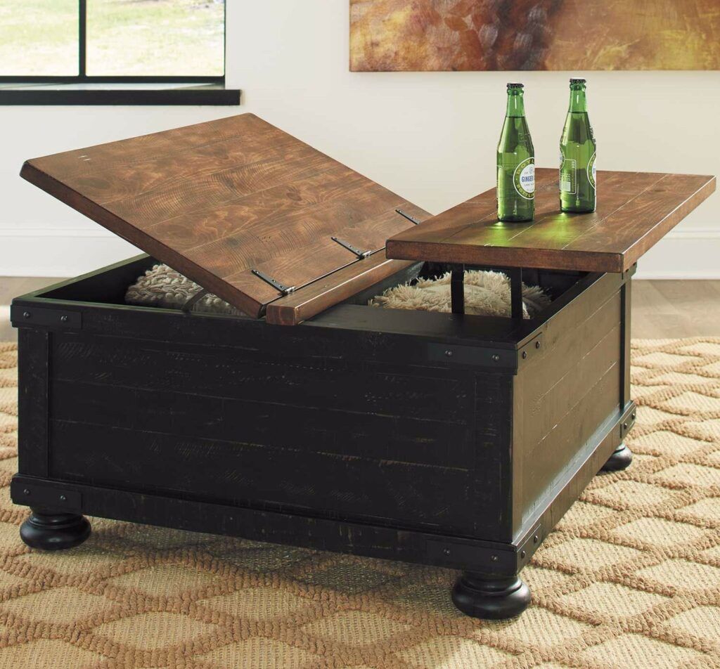 Convertible and lift-top coffee tables combine the appearance of a coffee table with the practicality of a dining or workspace and storage space. These tables are designed with a mechanism to lift the top of the table up and forward, giving you a raised surface. This makes it easier to work on your laptop, play board games, and enjoy meals without needing a separate dining space. When you lift the top, you can usually hide extra blankets, pillows, and other cluttering items in the coffee table as well. Just set the lid back down and voila! A tidier room for you!