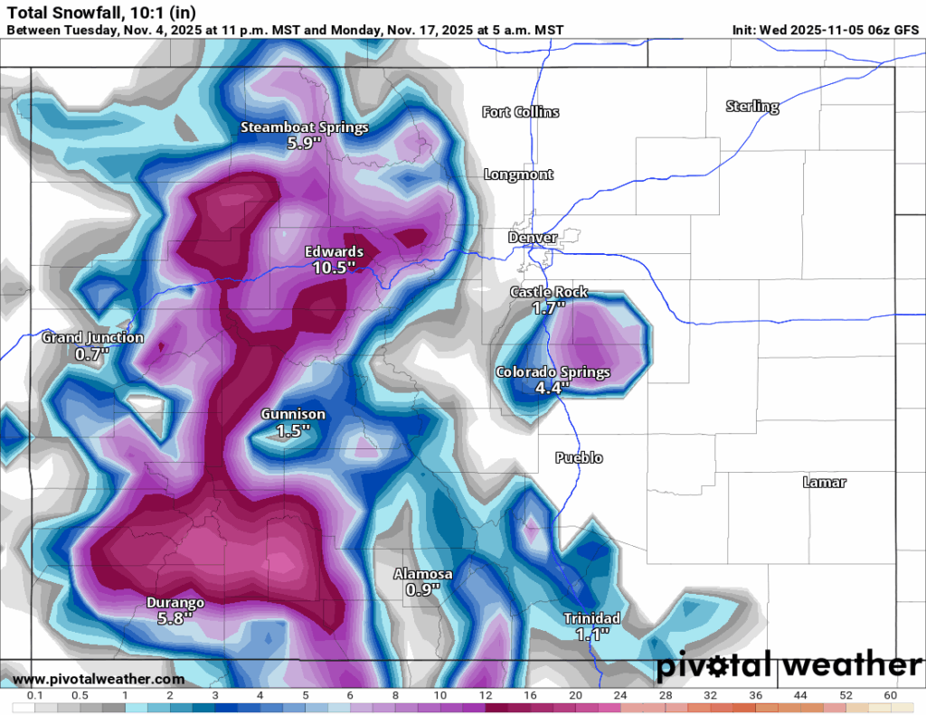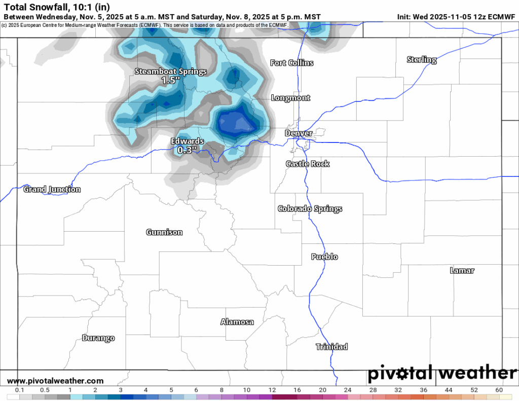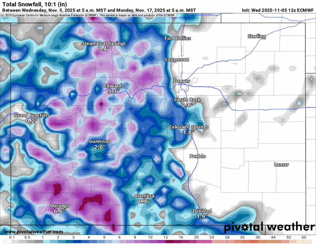 8-14″ of snow for Colorado possible as latest forecast shows promise to end dry November