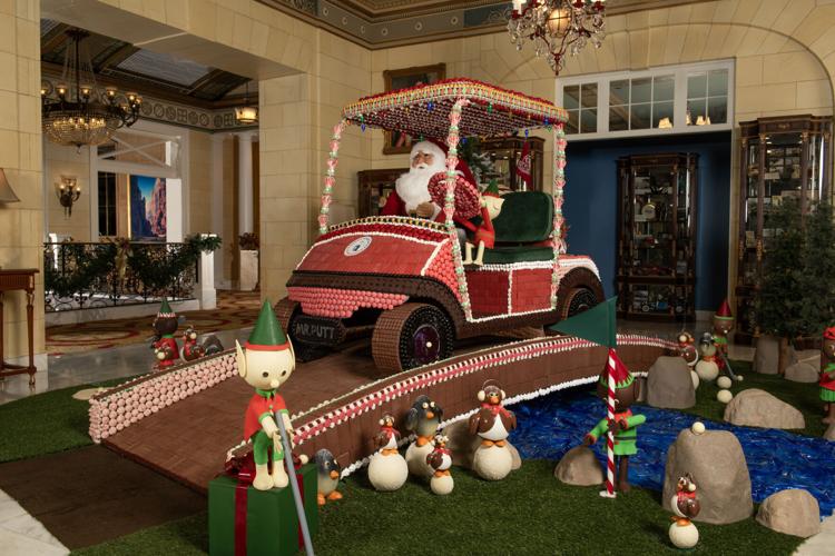 The Broadmoor’s annual gingerbread display finds Santa in a golf cart, in honor of the U.S. Senior Open Championship coming to the resort in June. Courtesy of Chad Chisholm Creative LLC