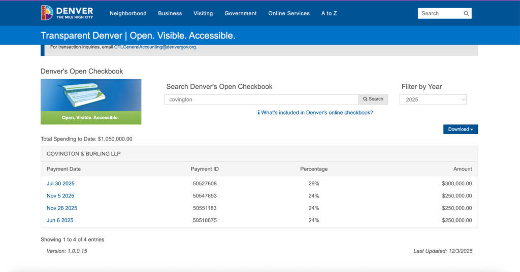 “The city regularly enters into contracts with outside counsel to provide specialized legal expertise or to address a need for additional capacity,” said City Attorney’s Office spokesperson Melissa Sisneros in a statement to The Denver Gazette in February after the firm was hired. “This legal counsel allows the city of Denver’s leadership to focus on delivering the high-quality services residents expect and deserve, while navigating complex legal matters, including federal government actions.”