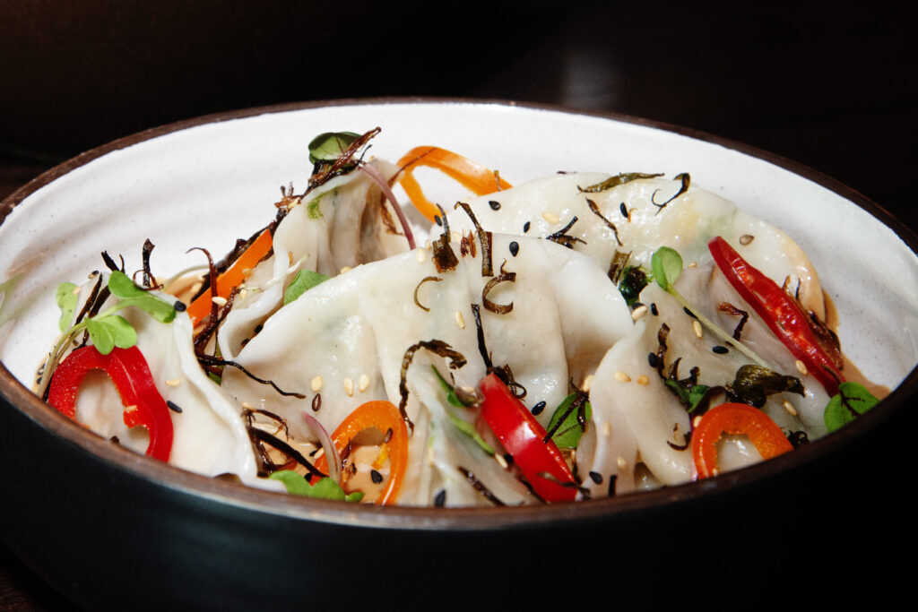 - Chili Wontons – (shrimp, pork, zha cai, chili sauce, cilantro) – made without broth, or “dry style,” the wontons are tossed in a house soy and chili sauce, before being finished with fresh cracked maqaw “black” pepper that the chefs import from Taiwan––it’s commonly known as Taiwan Mountain Pepper and used by Taiwan’s indigenous Atayal tribe