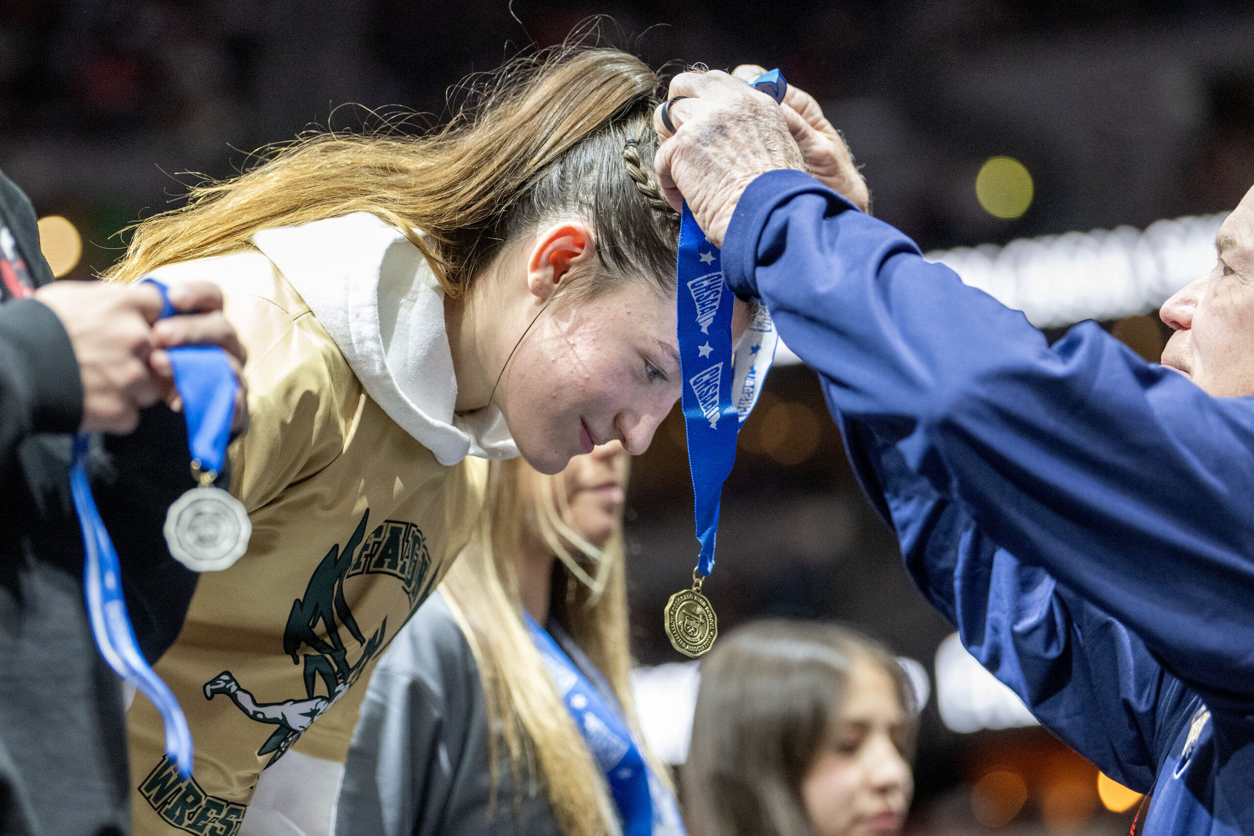 Falcon freshman Allison McDaniel wins 5A girls 110-pound state wrestling title despite dislocated shoulder
