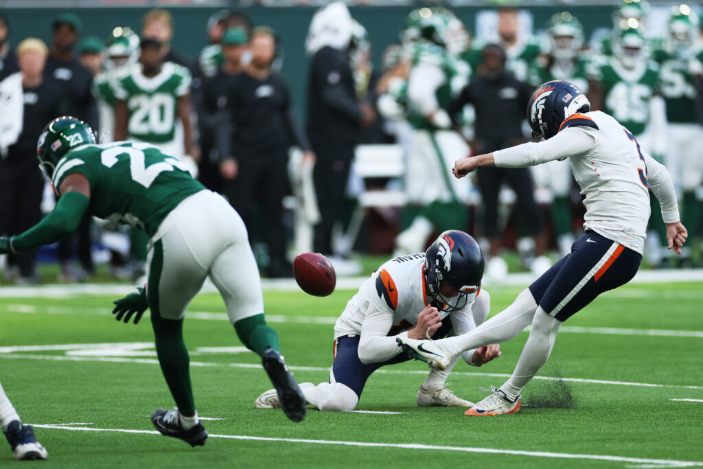 … to the NFL for trying to fit in with the locals. When in London, kick the ball. The Broncos and Jets combining for 13 punts and five field goals will be the lasting memory of the NFL’s latest foray into soccer country, but this snoozer was forgettable. What were the odds on tight end Nate Adkins scoring the only touchdown? Perhaps the NFL guys saw the contract of Erling Haaland, whose weekly income is $610,000 for kicking balls with Manchester City.