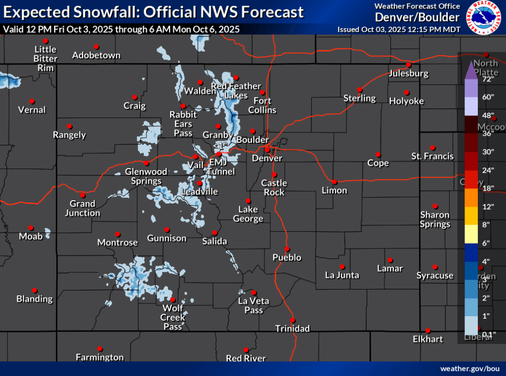 It’s looking like some snow is setting up to hit Colorado’s mountains this weekend, though anticipated totals have been a bit downgraded from some initial reporting that indicated as much as 10 inches could accumulate in a few select high-elevation parts of southwest Colorado.