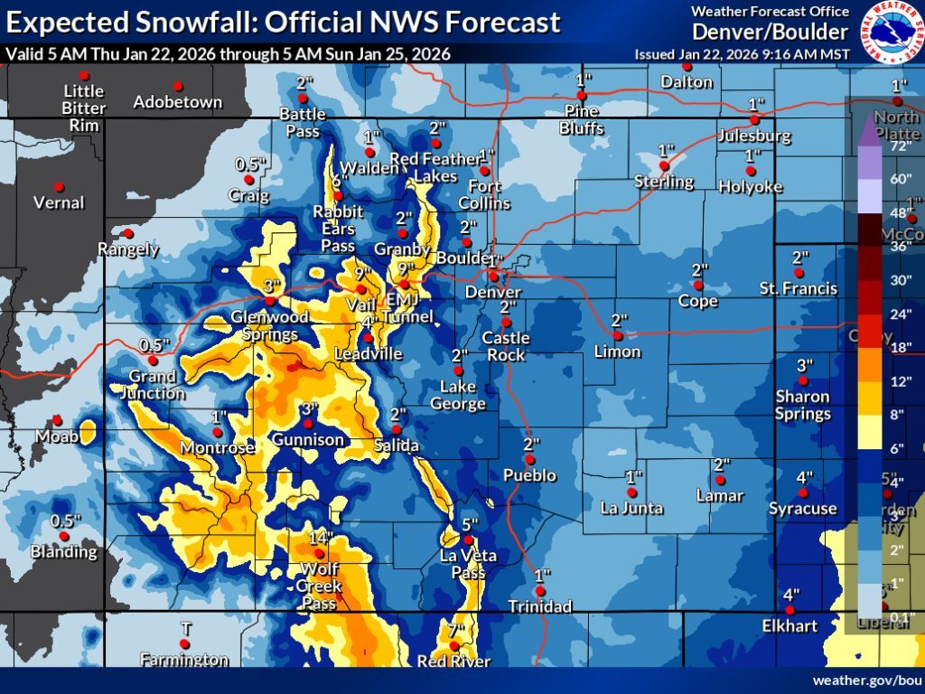 Forecast intensifies to show 24″ of snow possible on some Colorado peaks thru weekend